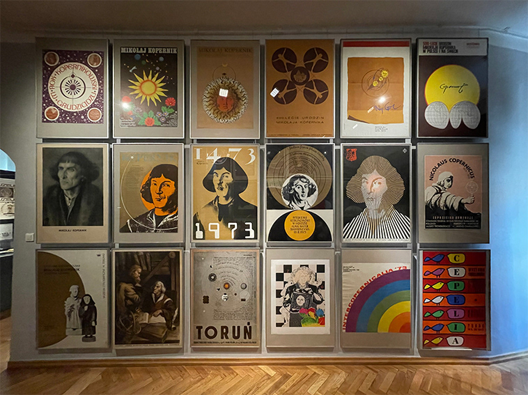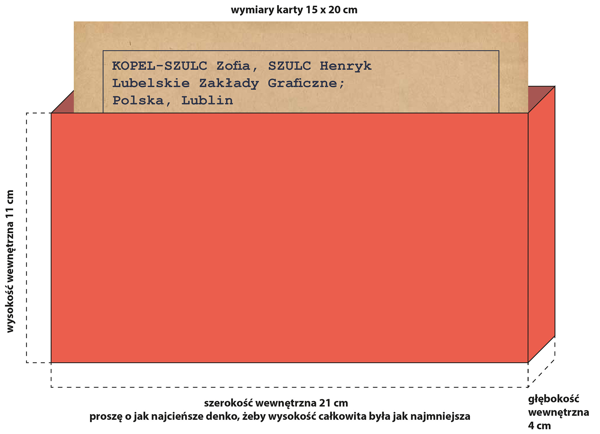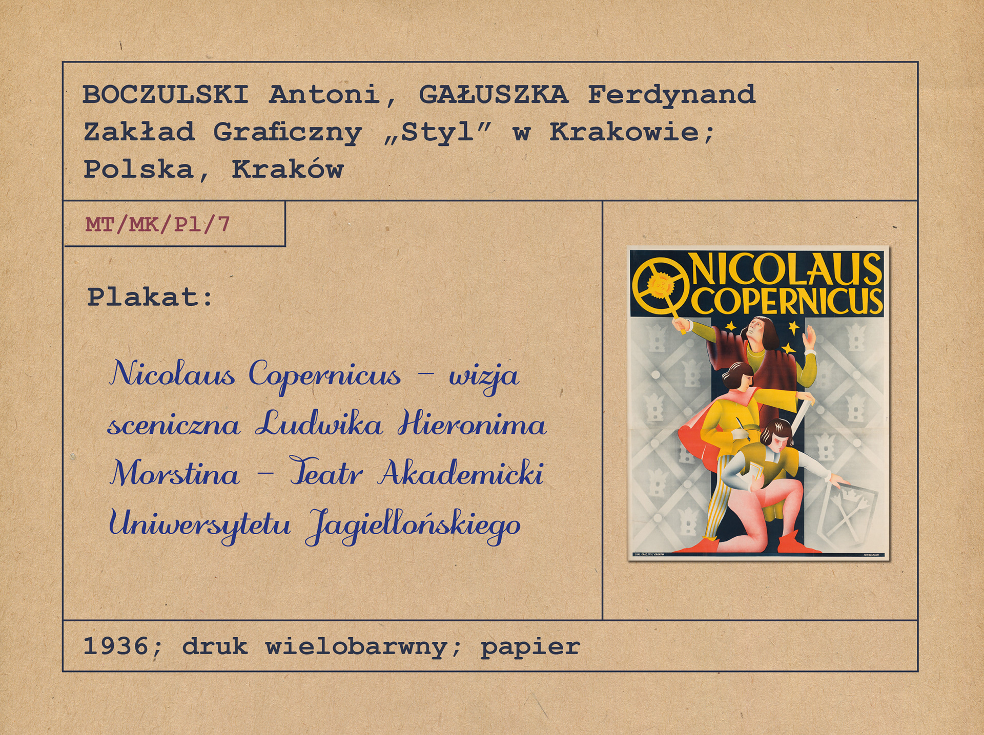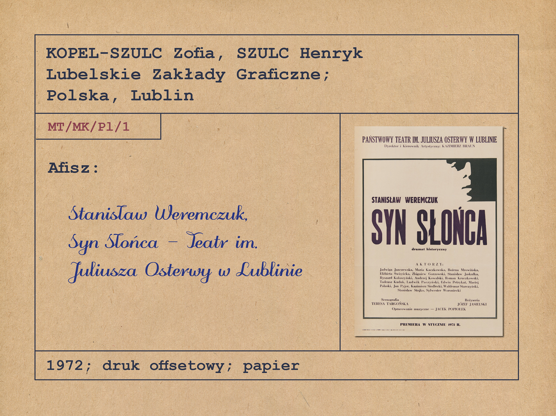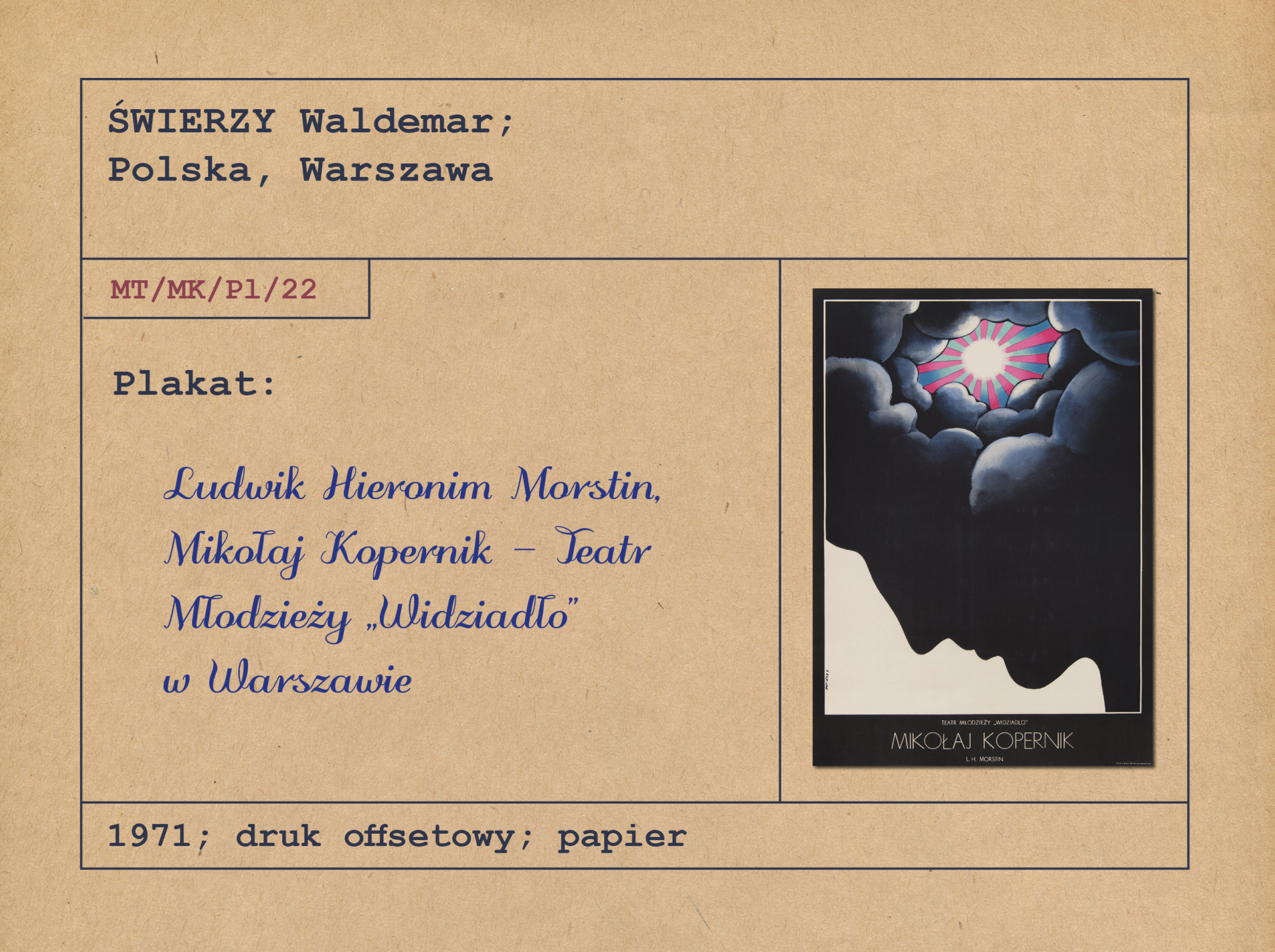 Kolekcja plakatów, w stosunku do ilości miejsca ekspozycyjnego, była na tyle liczebna, że niektóre ściany musiały zostać nimi wypełnione po sam sufit, w dodatku tak gęsto, że pomiędzy obiektami nie było już miejsca na ich opisanie. Zaprojektowałam więc podpisy w formie kart bibliotecznych, które można było wziąć do ręki i na podstawie kolorowej miniaturki odnaleźć odpowiedni plakat na ścianie.