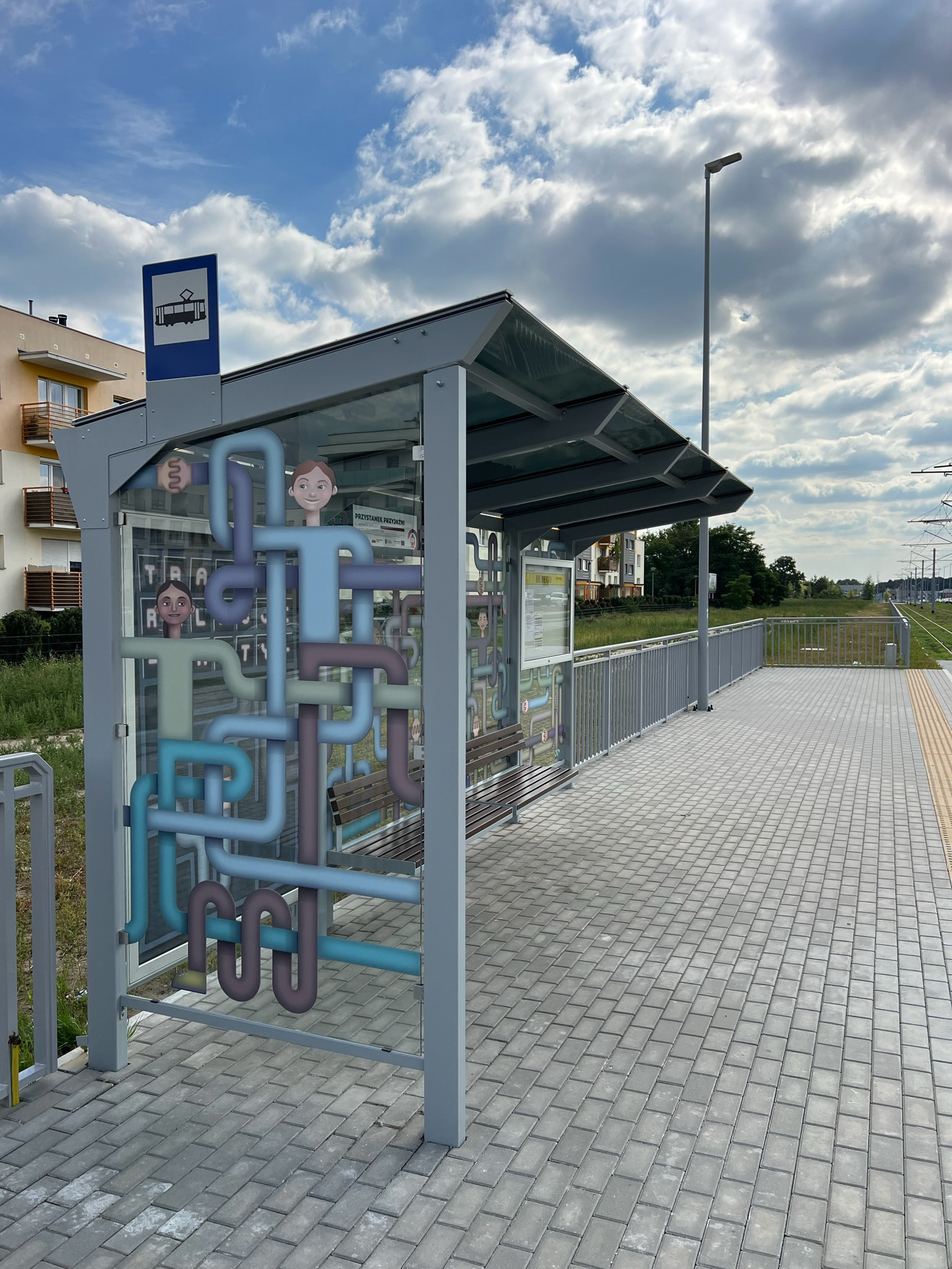 Aranżacja wiaty przystanku tramwajowego przy ul. Hubego w Toruniu. Projekt dla Miejskiego Zakładu Komunikacji w Toruniu (Toruń 2023) / Arrangement of the tram stop shelter at ul. Hubego in Toruń. Project for the Municipal Transport Company in Toruń (Toruń 2023) /